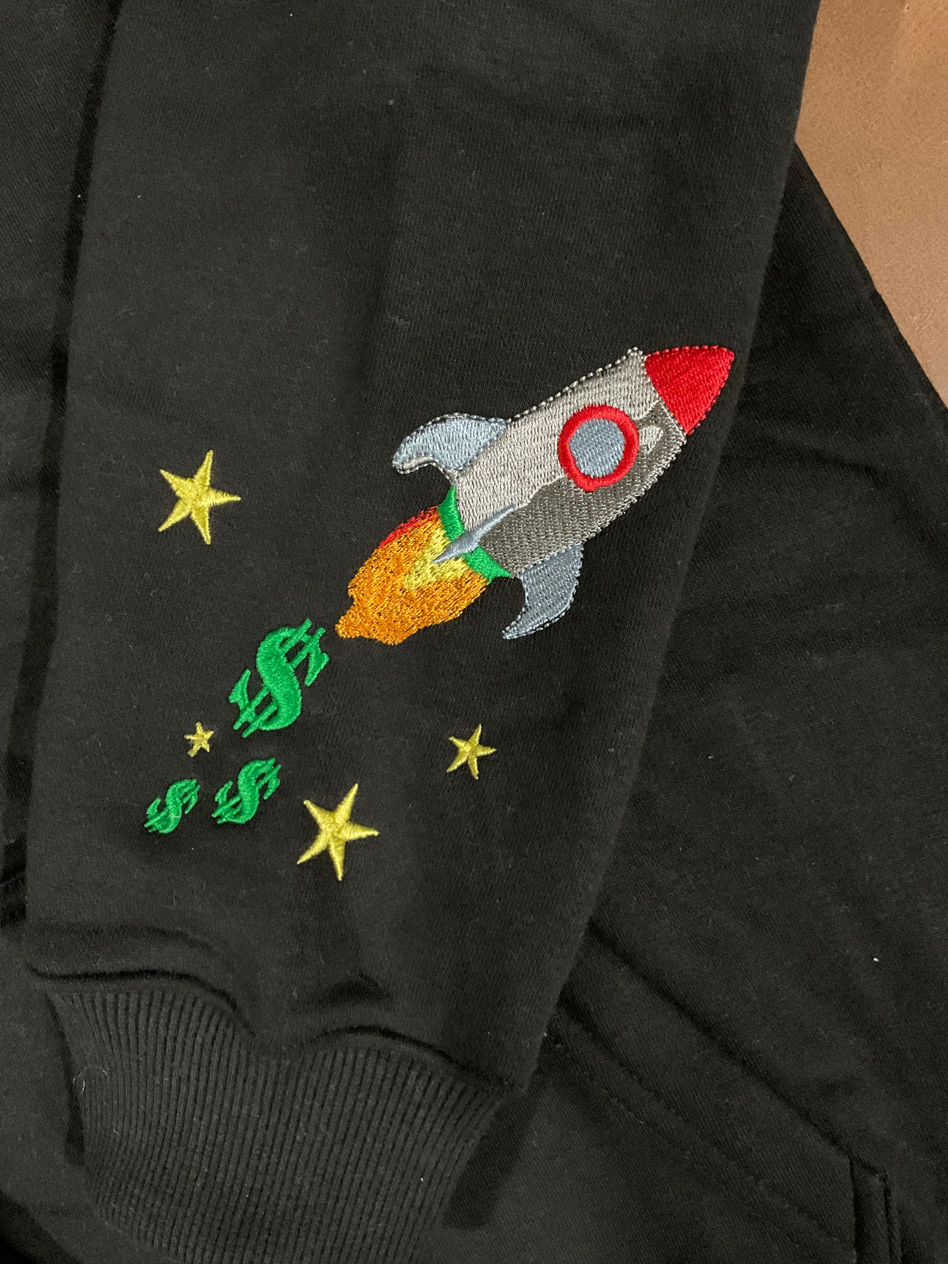 Classic Self Made premium high quality hoody and jogger set with zipper pockets on each side and one back right zipper pocket.